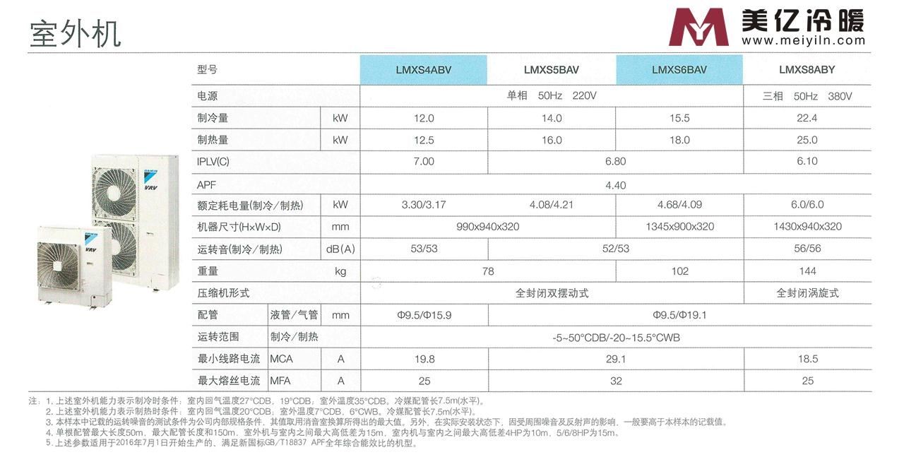 LMX系列,小巧型室外機,具有兩房兩廳、三房兩廳、四房兩廳三種套餐形式,靈活應對105㎡-200㎡不同房型的空調需求。
